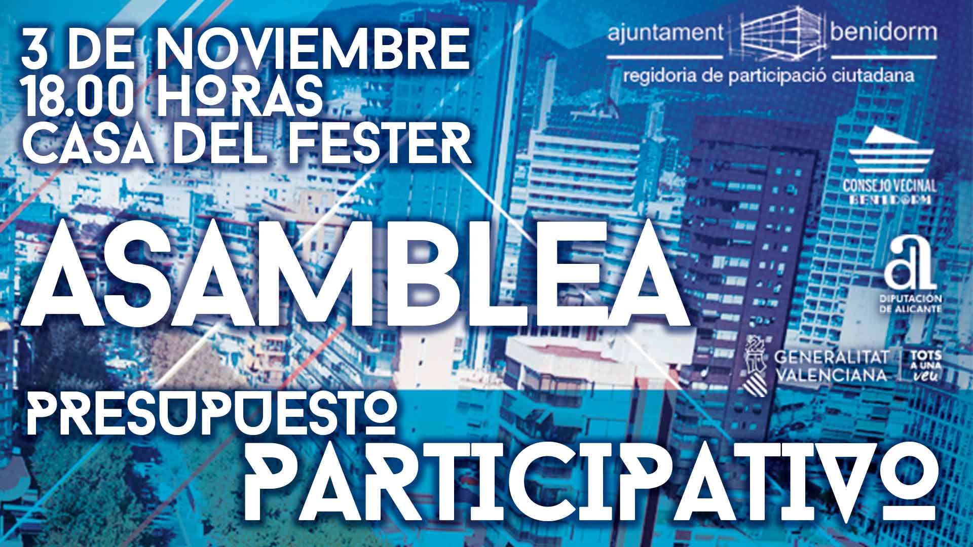 La Concejalía de Participación Ciudadana del Ayuntamiento de Benidorm recupera mañana jueves la asamblea de presupuestos participativos tras dos años sin hacerlo a causa de la pandemia, una cita que tendrá lugar a las 18 horas en la Casa del Fester. El objetivo es dar visibilidad a las propuestas vecinales para que sean incluidas en los presupuestos del próximo ejercicio una vez sean votadas y valoradas por los técnicos municipales.