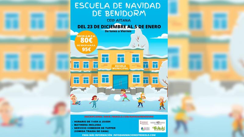El precio de la ‘Escuela de Navidad’ es de 80 euros para socios del AMPA y de 95 euros para no asociados. El plazo de inscripción está abierto hasta el 20 de diciembre y el trámite debe realizarse en www.trokolo.com/navidadbenidorm.