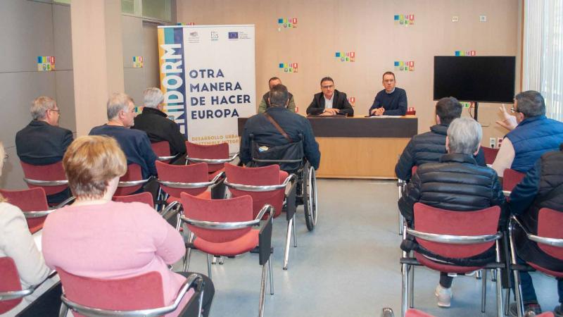 Hoy, el Ayuntamiento de Benidorm se ha reunido con administradores de fincas, representantes del consejo vecinal y vecinos de las calles Santa Cristina, San Marcos, San Ramón y Santo Tomás para explicarles el avance de las obras de mejora de la movilidad de la Estrategia de Desarrollo Urbano Sostenible e Integrador (EDUSI) de Benidorm. Con una inversión que asciende a los 1.052.591,96 euros, esta primera fase de las obras está sustituyendo las aceras actuales por una plataforma única de pavimento antideslizante para asegurar la accesibilidad de todos los vecinos.