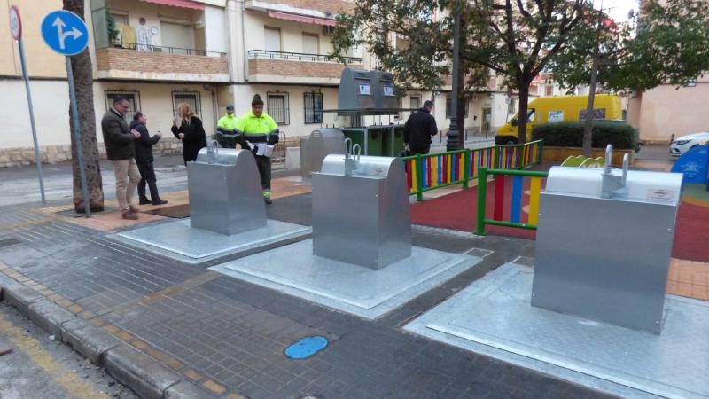 Se trata de dos contenedores de residuos orgánicos, dos de envases y uno más de papel cartón que sustituyen a los existentes anteriormente, que ocupaban más espacio en superficie y generaban más suciedad.