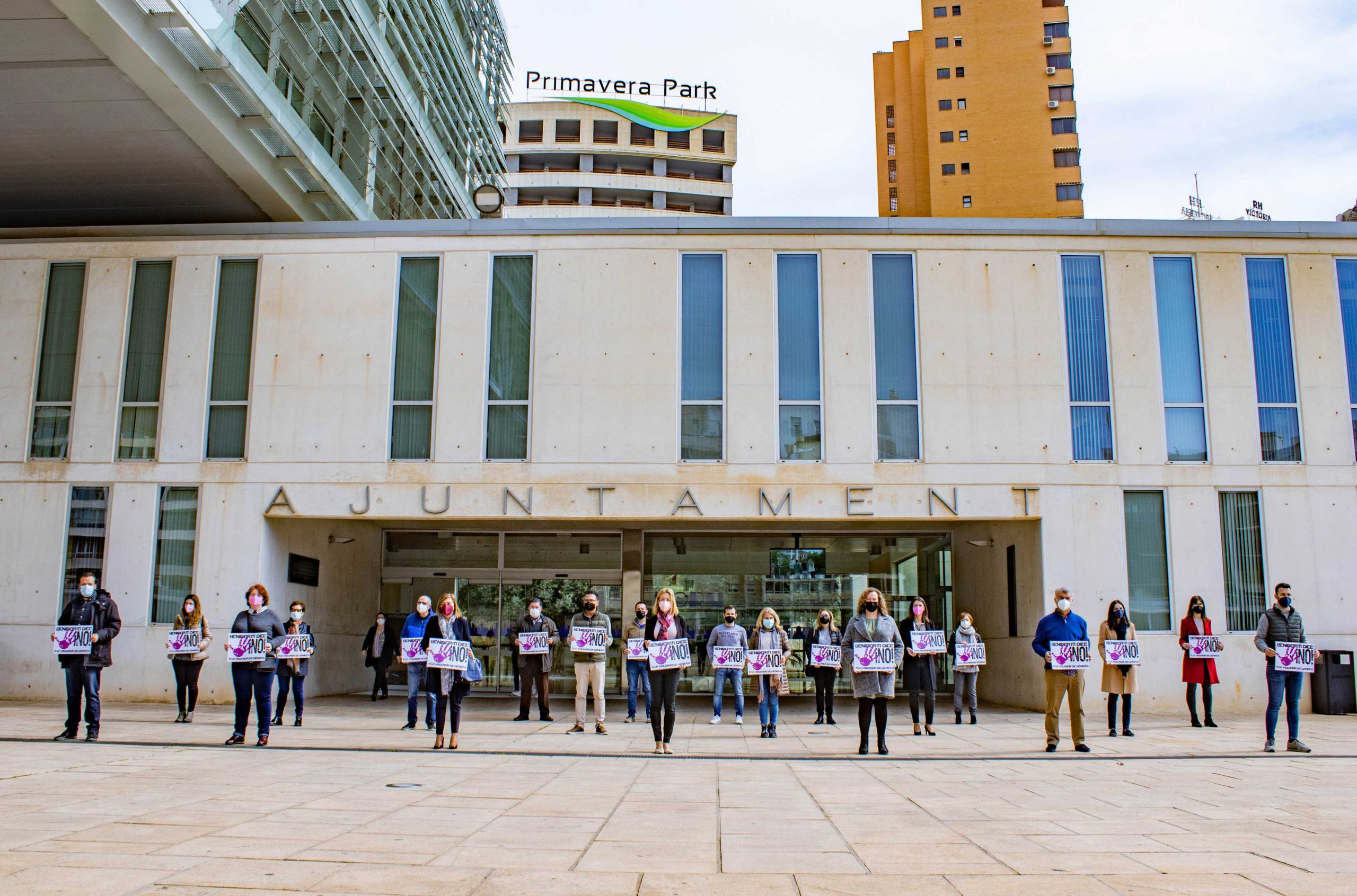 Benidorm ha guardado este mediodía un minuto de silencio en memoria de la última víctima de la violencia machista en España. Una mujer de 48 años supuestamente asesinada por su ex pareja el pasado martes, quien le arrancó la vida con al menos siete puñaladas en la madrileña localidad de Torrejón de Ardoz. La víctima tenía dos hijos, uno de ellos menor de edad.