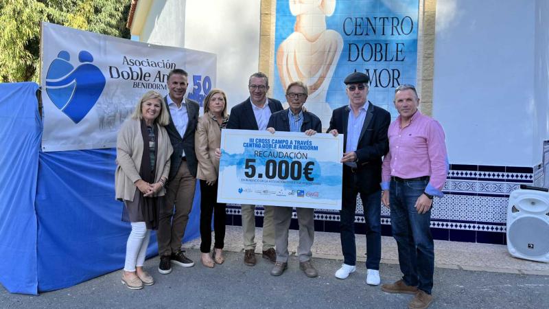 El alcalde de Benidorm Toni Pérez, junto a las ediles de Bienestar Social y Deportes, Ángela Llorca y Mariló Cebreros, ha hecho entrega a medio día, en las instalaciones del Centro Doble Amor, de un cheque, por importe de cinco mil euros, con la recaudación de las inscripciones de los participantes en el III Cross Solidario Campo a Través que a beneficio del Doble Amor que se celebró el domingo, 30 de octubre, y en el que colaboraron la Concejalía de Deportes y el Club de Atletismo Benidorm, junto a firmas locales.