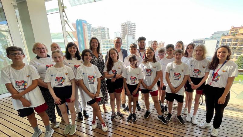 Un grupo de escolares de 6º de Primaria de la experiencia educativa conjunta que realizan los colegios Internacional Lope de Vega de Benidorm y Ramsta Skola de Upsala, Suecia, han girado visita esta mañana a la dependencias municipales donde han sido recibidos por el alcalde de Benidorm, Toni Pérez, y la concejal de Educación, Maite Moreno.