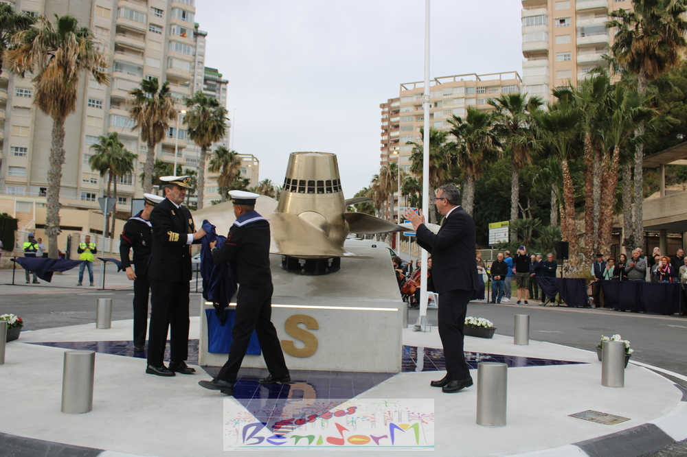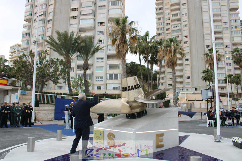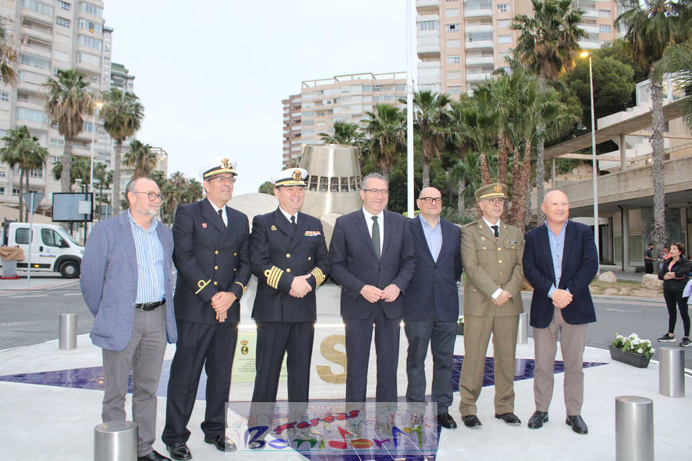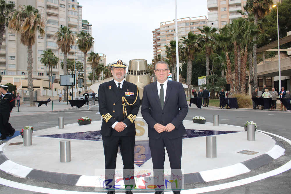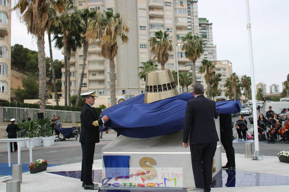 El Ayuntamiento de Benidorm y la Armada Española han estrechado aún más los históricos lazos que vinculan a ambas instituciones. Ha tenido lugar en el simbólico acto de la cesión de una hélice de la corbeta ‘Cazadora’ (F-35) a la ciudad de Benidorm que se ha celebrado en el mismo lugar en el que se ha instalado el propulsor, una rotonda de reciente construcción en Poniente, en la confluencia de las avenidas de Xixo y Armada Española.