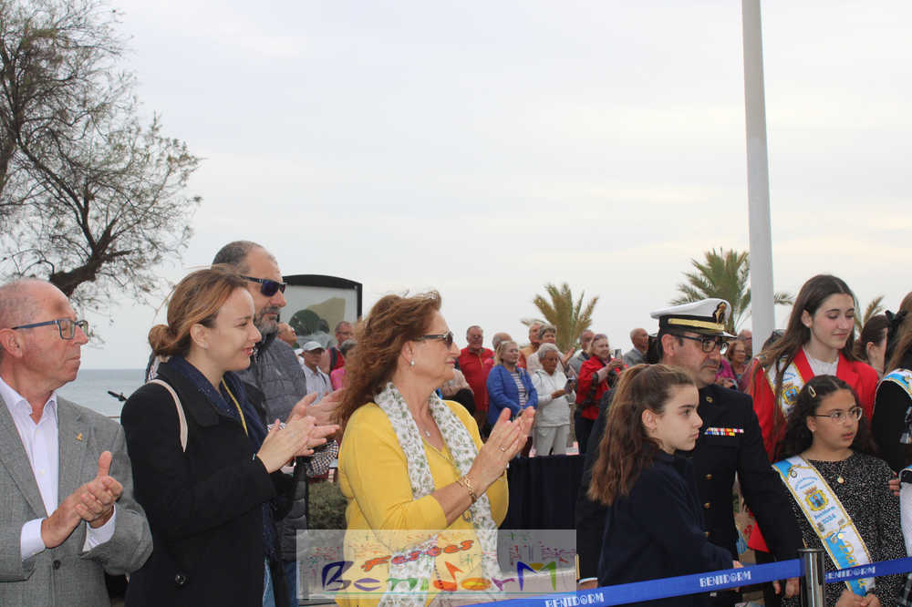 La hélice luce ya después de haber sido sometida a un exhaustivo proceso de limpieza y pulido y junto a ella se ha colocado una placa descriptiva con algunos de los datos más relevantes del buque ‘Cazadora’. El acto ha comenzado con el izado de la bandera de España en un mástil instalado junto a la hélice, para descubrir a continuación la placa conmemorativa de la cesión de la Armada a la ciudad de Benidorm como muestra de la gran vinculación y relación de afecto y admiración de nuestra ciudad con la Armada y con todo lo relacionado con el mar.