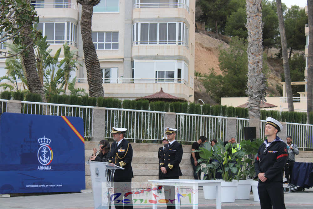Pérez ha puesto el acento en la vinculación histórica de Benidorm “con las cuestiones del mar” que dijo, “son parejas a nuestro hito fundacional”. “Con el Mediterráneo y junto a él hemos labrado nuestra historia y dado a España una larga pléyade de marinos ilustres que han destacado en el corso, la almadraba, la marina mercante y la marina militar” ha enfatizado el alcalde, que también ha rememorado algunas de “las innumerables páginas de hechos que relacionan la conjunción de Benidorm y nuestra marina militar”.