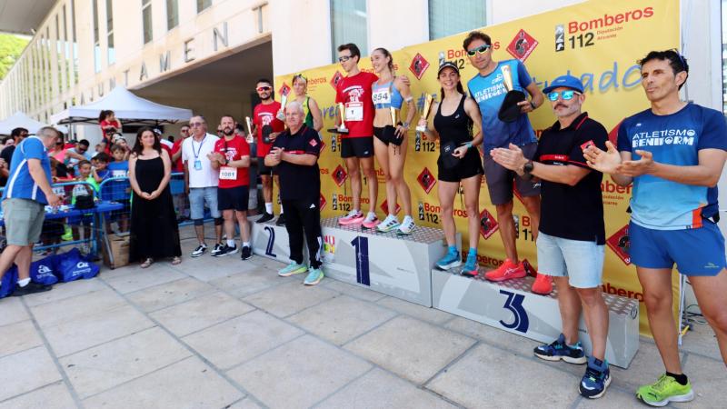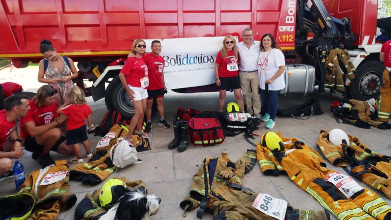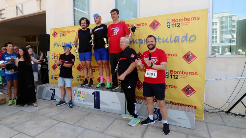 Además de participar en la organización de la carrera junto al Grupo Brotons y la Concejalía de Deportes, los efectivos del Consorcio Provincial de Bomberos de la Marina Baixa han refrescado desde uno de los camiones a los corredores con agua fresca para mitigar los efectos del intenso calor. Además, varios de ellos también han realizado el recorrido completo equipados con sus trajes de intervención, que superan los 25 kg de peso, incluyendo casco, botas y botella de aire, en un gesto simbólico, de gran dificultad física, como muestra de su compromiso con la causa y homenaje a la resistencia de quienes luchan cada día contra enfermedades como la ELA.