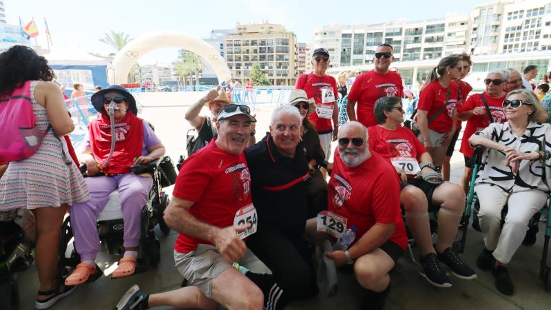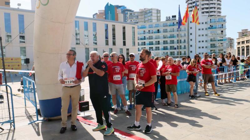 El alcalde de Benidorm, Toni Pérez, junto al concejal de Deportes, Javier Jordá; el propio Paco Pedrera, y otros representantes de la Corporación municipal, han sido los encargados de dar la salida a la prueba desde la plaza de SS MM los Reyes de España, donde el organizador ha aprovechado para agradecer todas las inscripciones y donaciones que han recibido y reivindicar, una vez más, la aplicación de la Ley ELA, aprobada en el Congreso el pasado 10 de octubre de 2024 y que casi ocho meses después continúa sin dotación presupuestaria por parte del Estado.