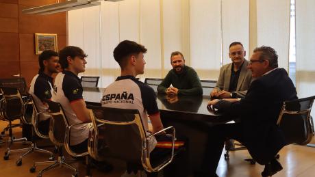 Los tres representantes del Taekwon-Do Club TAE de Benidorm, Lucas Mencía. Fernando Sanabria y Lui Owen, integrados en el equipo nacional, Taekwon-do España ITF, que participará en el Campeonato Europeo AETF 2026 en el Tabor Sport Hall de Maribor (Eslovenia), han visitado esta mañana el Ayuntamiento donde han sido recibidos por el alcalde, Toni Pérez, y el concejal de Deportes, Javier Jordá.
