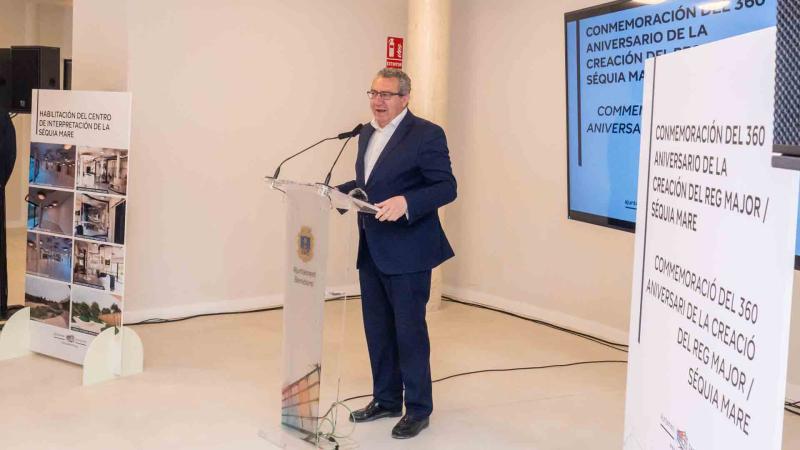 Tras el concejal, el catedrático e historiador, Francisco Amillo, se ha dirigido a los asistentes rememorando los 360 años de la creación del Riego Mayor que permitió la llegada del agua a Benidorm “de la que dependía la supervivencia de un pueblo que no tenía río como Altea o la Vila Joiosa”.