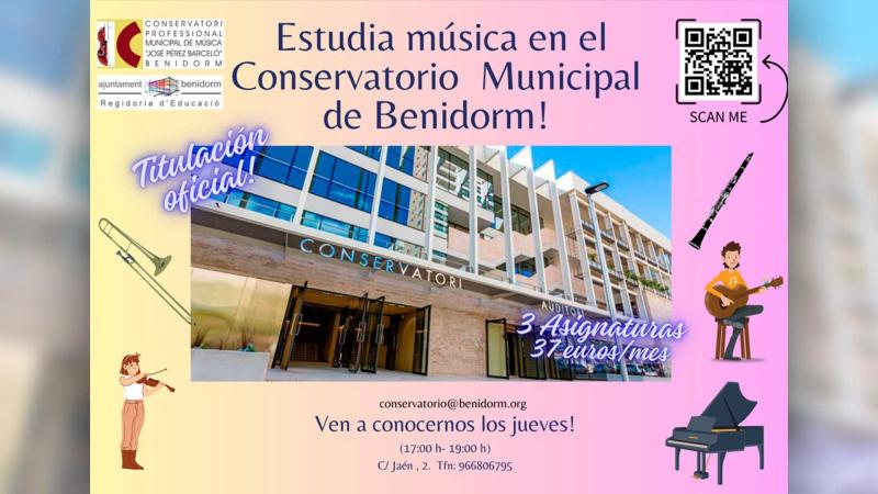 El Conservatorio Municipal de Música José Pérez Barceló de Benidorm, en colaboración con la Concejalía de Educación, ha organizado unas jornadas de puertas abiertas con el fin de captar nuevos alumnos para el centro. Estas jornadas tendrán lugar los jueves de 17 a 19 horas en las instalaciones del Conservatorio, ubicadas en el Centro Cultural en la calle Jaén.
