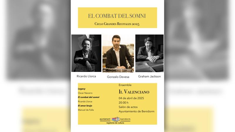 En esta ocasión, el ensemble estará representado por el propio Gonzalo Devesa y Graham Jackson, ambos profesores del Real Conservatorio Superior de Música de Madrid (RCSMM). A través de un dúo de oboe y piano, interpretarán música de compositores españoles, como la de Manuel de Falla (1876-1946), con ‘El amor brujo’; o de los alicantinos Óscar Navarro, con ‘Legacy’; y Ricardo Llorca y ‘El combat del somni’. Este último afincado en Nueva York, pero natural de Benidorm, quién además recientemente ha recibido el Premio Cultura de la Comunidad de Madrid en la especialidad de Música clásica.