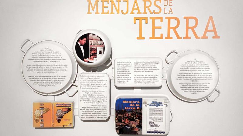 Pellicer ha resaltado que la muestra incluye un espacio dedicado a las Jornadas ‘Menjars de Terra’ organizadas a iniciativa del diario Información, “llegando a celebrarse 13 semanas gastronómicas entre los años 1987 y 1994”. En aquellas jornadas participaron 66 restaurantes y las disfrutaron más de 15.000 comensales y se contó con la colaboración de bodegas, de empresas del sector agroalimentario y de asociaciones gastronómicas, así como con la participación de los alumnos de las escuelas profesionales de hostelería de Santa Pola y Benidorm.