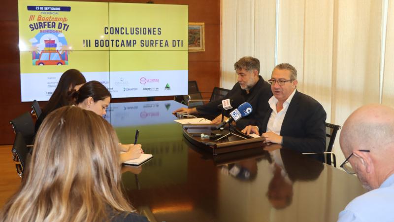 El III Boot Camp ‘Surfea DTI’ que se celebró en Benidorm el pasado mes de septiembre ha planteado una serie de medidas y recomendaciones para mejorar el modelo Destino Turístico Inteligente; unas medidas que se han plasmado en las conclusiones de aquel encuentro que han sido hechas públicas hoy por el alcalde de Benidorm, Toni Pérez, y por el director del Boot Camp, Fernando Molina.