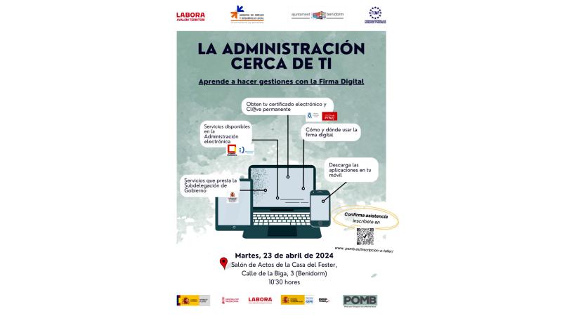 El Pacte per l’Ocupació de la Marina Baixa (POMB) ha organizado en Benidorm una jornada divulgativa denominada ‘La Administración cerca de ti’ para acercar el funcionamiento de las administraciones públicas a la ciudadanía, de forma que todas las personas puedan tener conocimiento y acceso a las diferentes gestiones que se pueden realizar de forma telemática con la Administración.