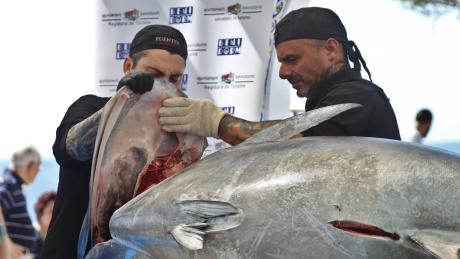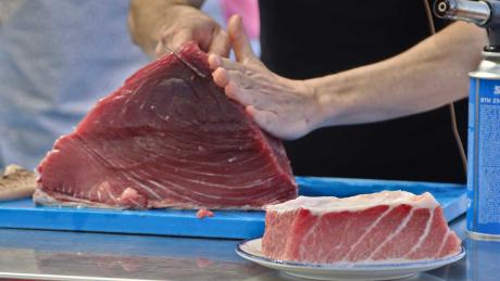 El ronqueo de un ejemplar de 270 kilos marca el inicio de las ‘IV Jornadas del Atún’, la segunda etapa del Benidorm Gastronómico 2024