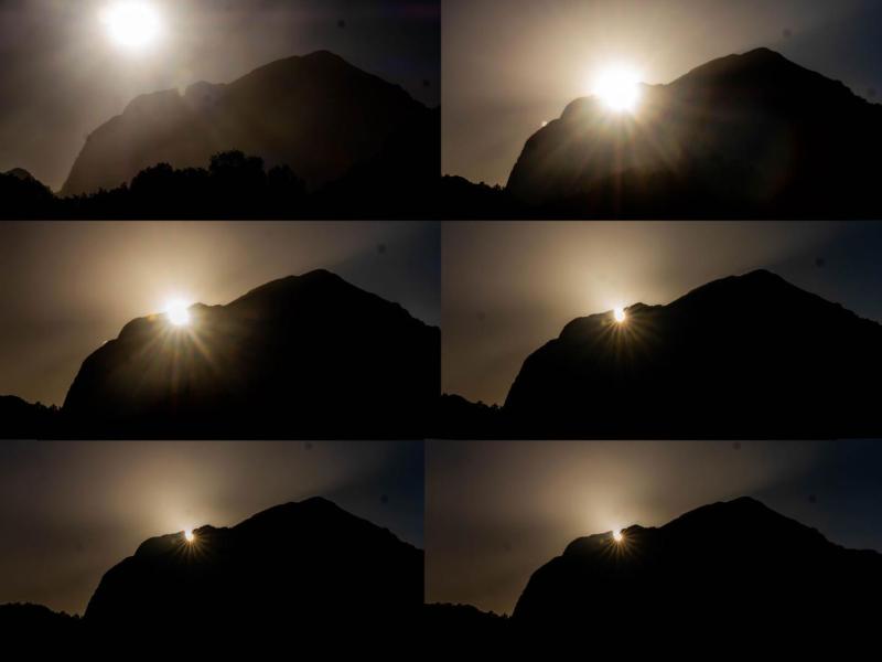Llegado el momento, el sol no faltó a su cita, tras la decepción del pasado año en que las nubes impidieron disfrutar a los asistentes del fenómeno. Los asistentes, protegidos por cristales opacados, radiografías y los más innovadores con cascos de soldadura eléctrica, llegó el momento y, en apenas un momento, el astro rey cumplió con el ritual al esconderse por el Portell, o Tajo de Roldán, de la cima de la Marina Baixa.