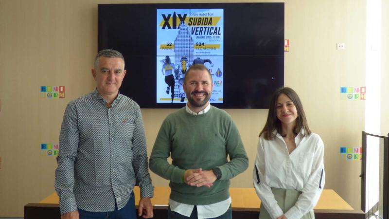 Este próximo sábado 26 de abril se celebrará la XIX edición de la ‘Subida Vertical al Gran Hotel Bali’, una de las pruebas clásicas del circuito mundial de ‘Towerrunning World Association’, que ya tiene cubierto el cupo máximo de inscripciones. La carrera se ha presentado esta mañana en una rueda de prensa en el Ayuntamiento con la presencia del concejal de Deportes, Javier Jordá; el director de la prueba, Miquel Tortosa; y la directora del hotel Bali, Silvia Cortés.