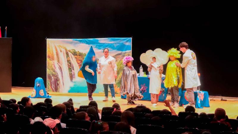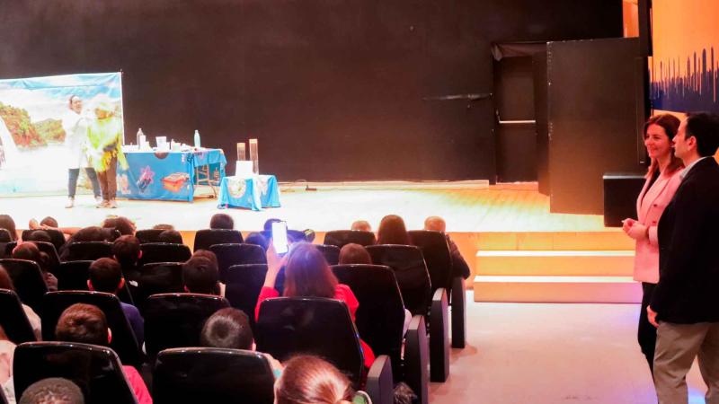 ‘La gota viajera’ es un espectáculo interactivo que ha reunido a 366 alumnos en el Salón de Actos municipal