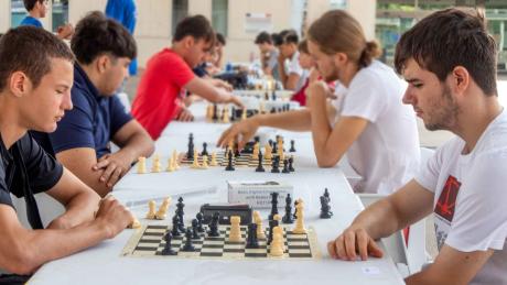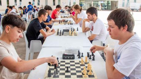 Alumnos de los IES Benat de Sarrià, Beatriu Fajardo de Mendoza, Mediterrània y del Colegio Internacional Lope de Vega, de Benidorm, junto a estudiantes del Arabí de l’Alfàs de Pi y de la Malladeta de la Vila Joiosa, han tomado la icónica plaza benidormense donde se están celebrando simultáneamente decenas de partidas.
