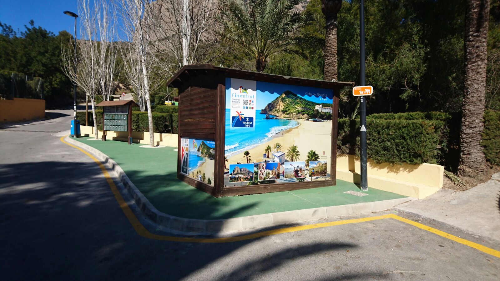 Desde la Concejalía de Turismo del Ayuntamiento de Finestrat se han llevado a cabo una serie de actuaciones dirigidas a aprovechar los propios puntos de información turística como elementos de promoción de la localidad. Estas actuaciones han tenido lugar tanto en el área recreativa de la Font del Molí como en el punto de información de la Cala, situado a pie de playa. Concretamente, el punto ubicado a las faldas del Puig Campana ha sido rotulado con imágenes de la playa y, viceversa, es decir, el punto de la playa ha sido decorado con imágenes de la montaña y del casco histórico. En ambos casos los diseños invitan a la visita con el lema “Descubre Finestrat… a solo 5 kilómetros”. El alcalde y responsable del área de Turismo, Juan Francisco Pérez, indicó que con esta medida “aprovechamos espacios municipales que reciben muchas visitas como es la Font del Molí, punto de partida de las rutas de senderismo y escalada, y nuestra Cala, para promocionar todas las posibilidades que ofrece nuestra localidad. Al mismo tiempo, mejoramos la estética de estos puntos de información municipales”.