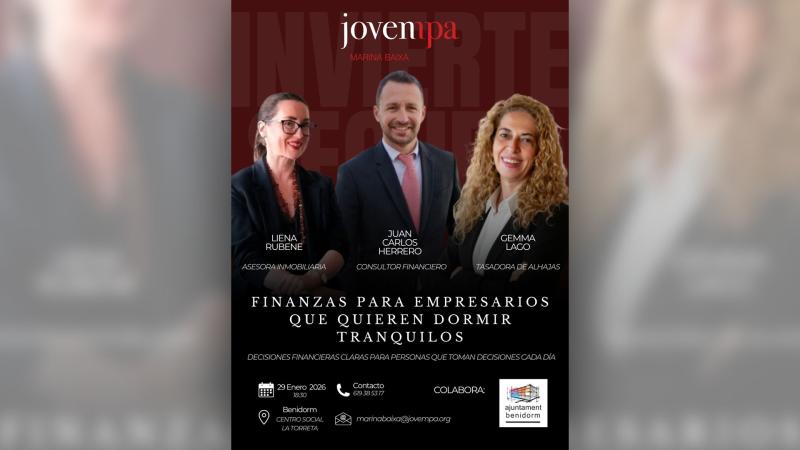 La Asociación de Jóvenes Empresarios de la Provincia de Alicante (Jovempa) ha organizado para mañana jueves 29 de enero una jornada que, con el título, ‘Finanzas para empresarios que quieren dormir tranquilos’ abordará aspectos relacionados con una gestión exitosa de los negocios y la adopción de decisiones financieras claras “para personas que toman decisiones cada día”, según explican desde la entidad.