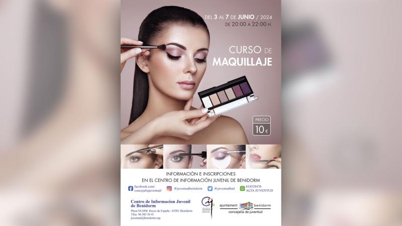 La Concejalía de Juventud del Ayuntamiento de Benidorm ha vuelto a organizar un curso de maquillaje que se desarrollará del 3 al 7 de junio desde las 20 a las 22 horas. El precio de la matrícula es de diez euros y los interesados podrán tener más información y formalizar sus inscripciones en el Centro de Información Juvenil.