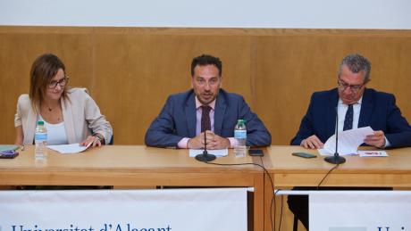 Con él se encontraban el vicerrector de Estudiantes y Empleo de la UA, Raúl Ruiz Callado; la directora ejecutiva de Hosbec, Mayte García; la directora de la Cátedra de Estudios Turísticos ‘Pedro Zaragoza Orts’, Ana Ramón Rodríguez; el secretario técnico de la Cátedra, Jesús Navarro; la secretaria académica del Instituto Universitario de Investigaciones Turísticas, Mª Reyes González; y la vicedecana de Prácticas, Estudiantes y Emprendimiento de la UA y coordinadora del Grado en Turismo, Mª Paz Such Climent, entre otros.