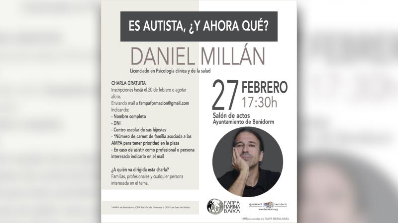 La Federación de Asociaciones de Padres y Madres de Benidorm y comarca, FAMPA Marina Baixa, en colaboración con la Concejalía de Educación del Ayuntamiento de Benidorm, ha organizado una charla gratuita que lleva por nombre ‘Es autista, ¿y ahora qué?’, destinada a familias y profesionales del campo educativo que estén interesados por el tema y que correrá a cargo del psicólogo Daniel Millán.