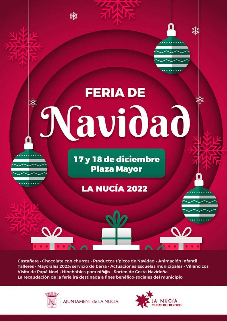 La XI Feria Solidaria de Navidad de La Nucía se desarrollará los días 17 y 18 de diciembre en el plaça Major. La Feria contará con la visita de Papá Noel, actuaciones de diferentes escuelas de baile y musicales y deportivas de La Nucía. Durante dos días se podrán comprar en los puestos solidarios, artículos relacionados con la navidad, cuya recaudación irá destinado a fines sociales. La entrada será libre y gratuita y estará abierta al público durante dos intensas jornadas llenas de actividades para todas las edades.