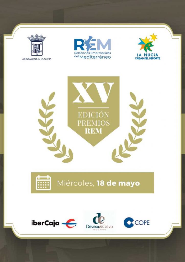 El próximo 18 de mayo en l’Auditori de La Nucía, la plataforma empresarial REM premiará en la decimoquinta edición de sus premios a 12 directivos y empresas: Calconut, Ambiseint, Surinver, Confederación Española de Comercio, Gaviota Group, VOI Scooters, Restaurante El Xato La Nucía, Carlos Alcaraz Garfia (tenista), Germaine de Capuccini, Seoriginalsweb (empresa Lab Nucia), Neumáticos Soledad y Bodegas Cerdá.