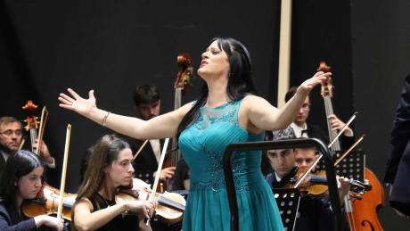 La soprano ilicitana Carmen Muñoz acompañó a la Unión en el concierto, que finalizó con la ‘Marcha Radetzky’ fuera de programa