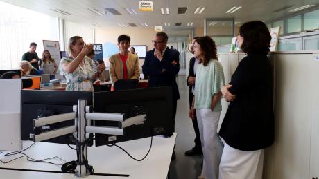 La secretaria de Estado de Turismo, Rosario Sánchez, ha calificado la Smart Office de Benidorm como “caso de éxito en nuestro territorio” de “gestión inteligente del turismo” y de “transición digital”. Sánchez ha hecho estas declaraciones tras visitar las instalaciones de la Smart Office municipal junto al alcalde, Toni Pérez; la concejal de Innovación, Aida García Mayor; la gerente de Visit Benidorm, Leire Bilbao; y la directora de Inteligencia Turística, Celia Romero. Una visita que ha coincidido con el arranque de la séptima edición del congreso Digital Tourist, que se celebra hoy y mañana en el centro cultural de Benidorm, y en la que la secretaria de Estado ha podido conocer de primera mano las herramientas que emplea la ciudad para la gestión del Destino Turístico Inteligente (DTI).