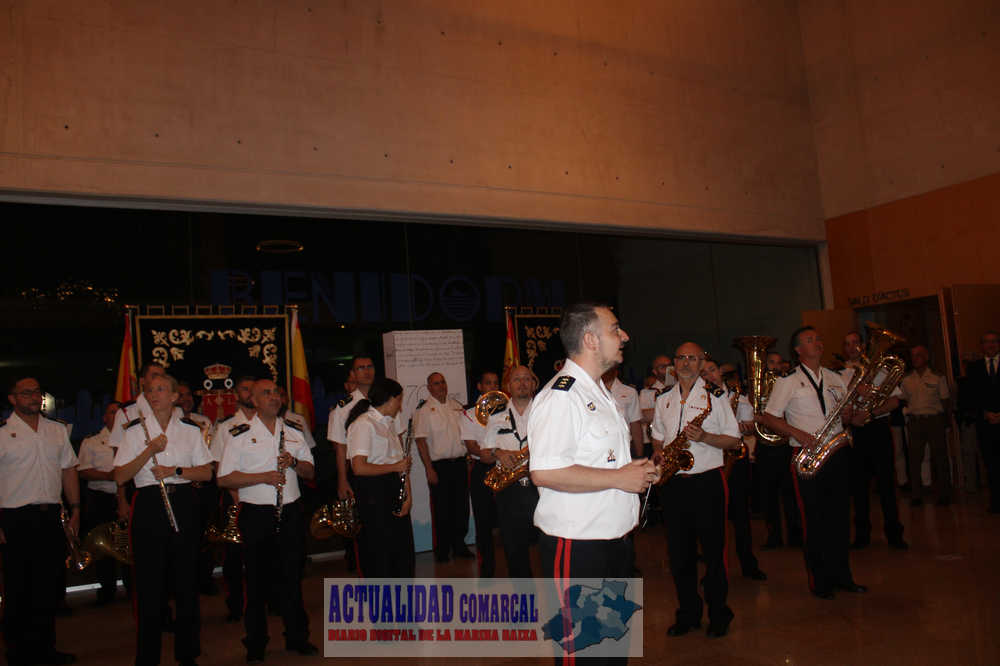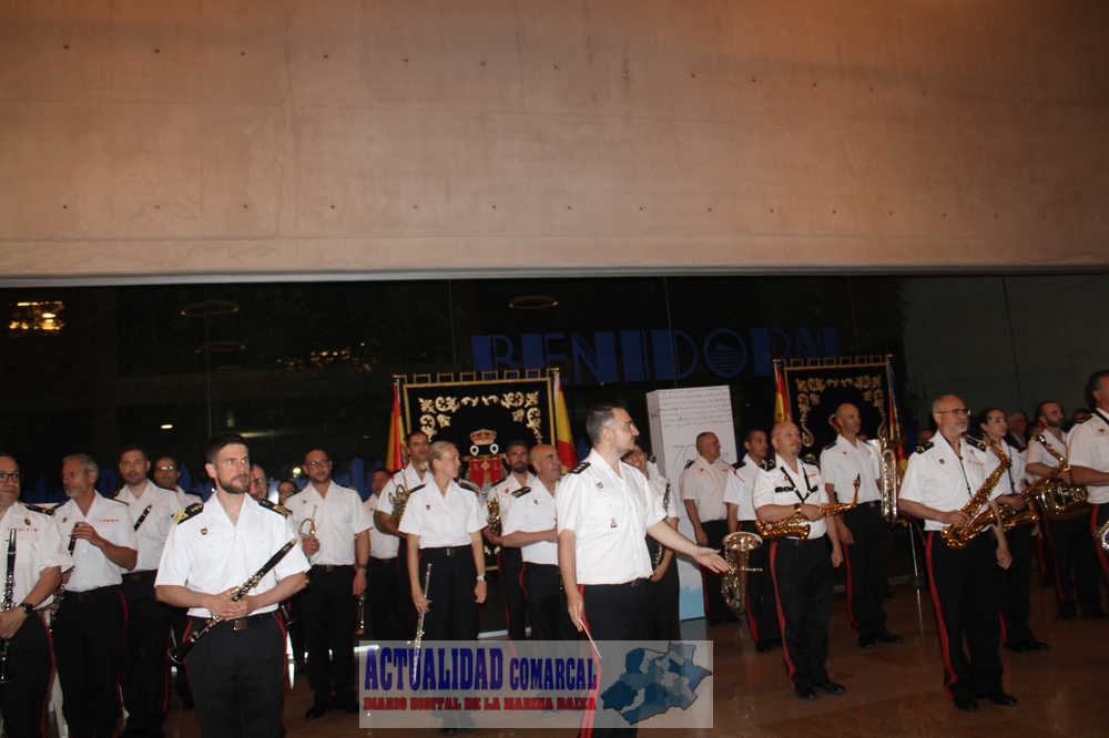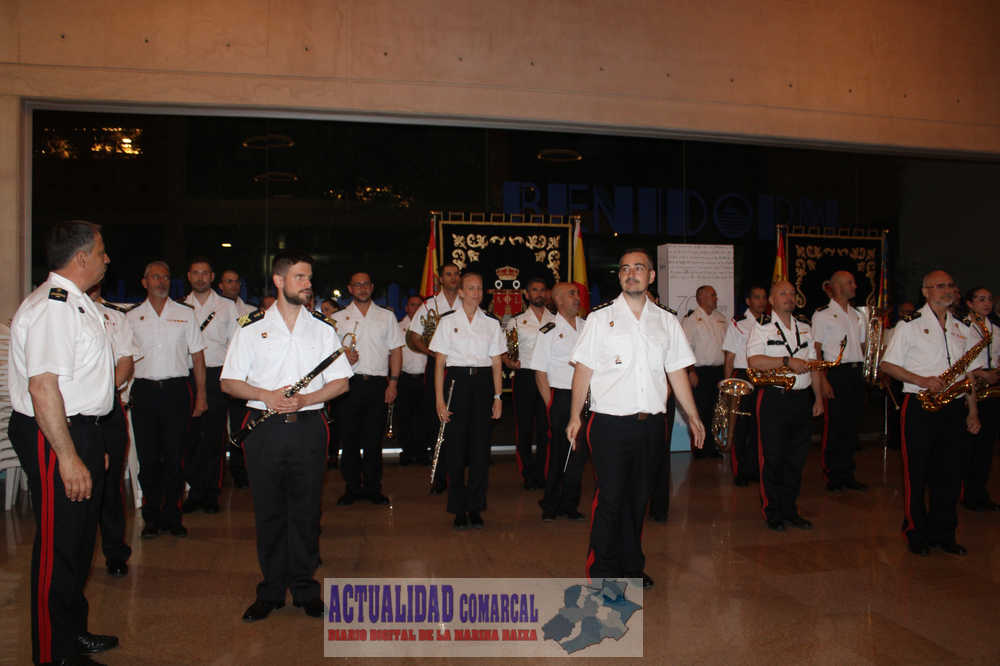 Seguidamente, el concierto continuó con tres piezas fuera de programa recibidas con entusiasmo por el público asistente, ‘Fiesta en Benidorm’, de Rafael Doménech Pardo, la ‘Marcha Real”, himno nacional de España y ‘Ganando a Barlovento’, de R. Sáez de Adana interpretada por la Unidad de Música del TERLEV de Infantería de Marina en el vestíbulo del Ayuntamiento.