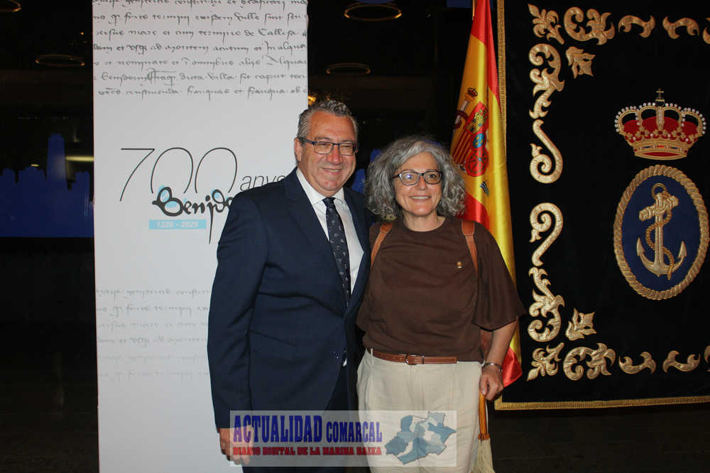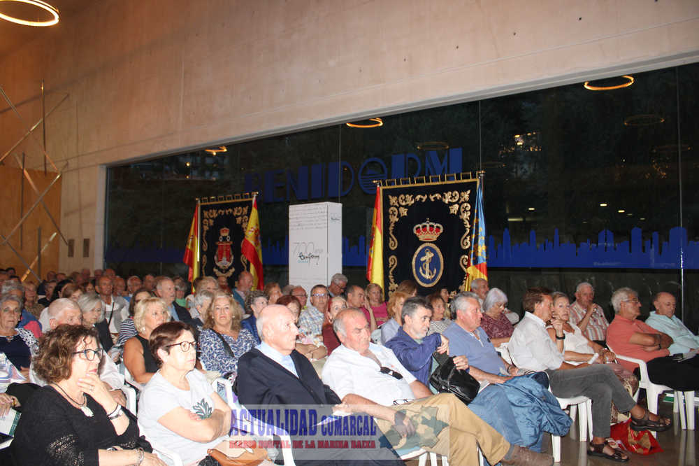 Toni Pérez abundó en la vinculación de Benidorm con el mar, con una patrona, la Mare de Déu del Sofratge “que arribó a nuestra playa a bordo de un llondro”, o el papel del corso, la marina mercante o la almadraba que hicieron “que los hijos de Benidorm tuvieran una presencia importante en las tareas de la mar o en la defensa de la patria también en la mar”, rememorando la gesta del condestable Zaragoza a bordo del acorazado Vizcaya en la Guerra de Cuba.