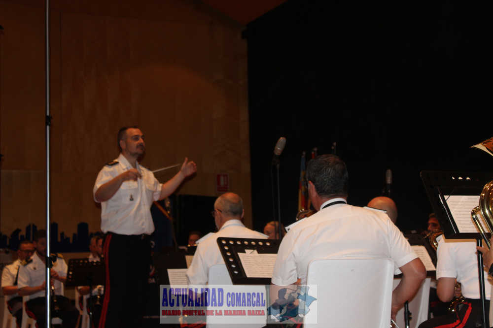 Bajo la batuta del capitán Víctor Enguídanos, la Unidad de Música del TERLEV de Infantería de Marina interpretó un variado repertorio que incluyó las obras ‘Mediterrando’ (del propio Enguídanos), ‘Danzas Persas «Khovantchina»’ de M. Mussorgsky, ‘Loa a la Bandera’ de F. Jordá, ‘Fanfarria para Su Majestad El Rey Felipe VI’ de L. García Cortizas, ‘Una Jornada Militar’ de J. Teixidor, ‘Bruixes en L’Horta’ de M. Asensi Martín, ‘Bolero Militar’ de J. Devogel, ‘De Cai’ de P. Piqueras, y ‘Corsarias’ de P. Alonso, pieza para la que el director solicitó la colaboración del público que cantó el pasodoble y acompañó con las palmas a la banda militar.