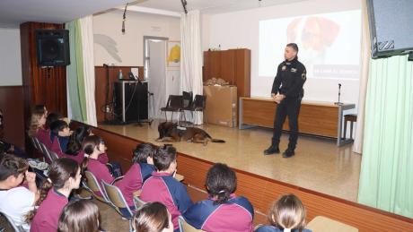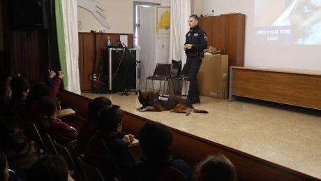 Hancko ha asombrado a alumnos y docentes por su pericia, obediencia y saber estar, lo que no sería posible sin el trabajo constante de los agentes y, a la vez, entrenadores, con quienes comparten la mayoría del tiempo prestando sus servicios a la ciudad. Un agente de la Policía Local ha explicado a los niños cómo han de comportarse con un perro desconocido, lo que pueden y lo que no deben hacer y las señales que envía el animal a los humanos.