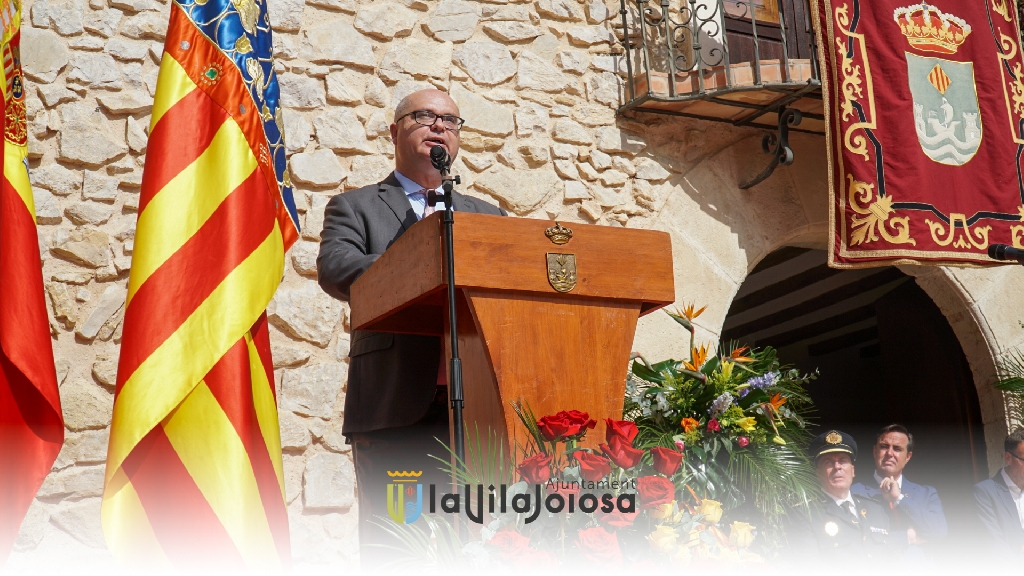 Andreu Verdú ha resaltado en su discurso el optimismo y progreso de la Vila Joiosa gracias al enorme esfuerzo realizado por los vileros y vileras para reivindicar nuevas infraestructuras que han sido posible gracias a la colaboración y buena sintonía del Ayuntamiento y la Generalitat