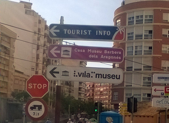 Del mismo modo, era necesario señalizar la Casa Museo la Barbera dels Aragonés. En este caso era una acción doblemente importante porque la Barbera es mucho más que una casa museo: en el edificio y en los jardines se desarrolla una intensa actividad social (bodas, actos protocolarios, conferencias…) y cultural (visitas guiadas y teatralizadas, representaciones en el auditorio al aire libre, exposiciones del Espai d’Art Contemporani…). Todo ello se verá beneficiado con esta señalización viaria.