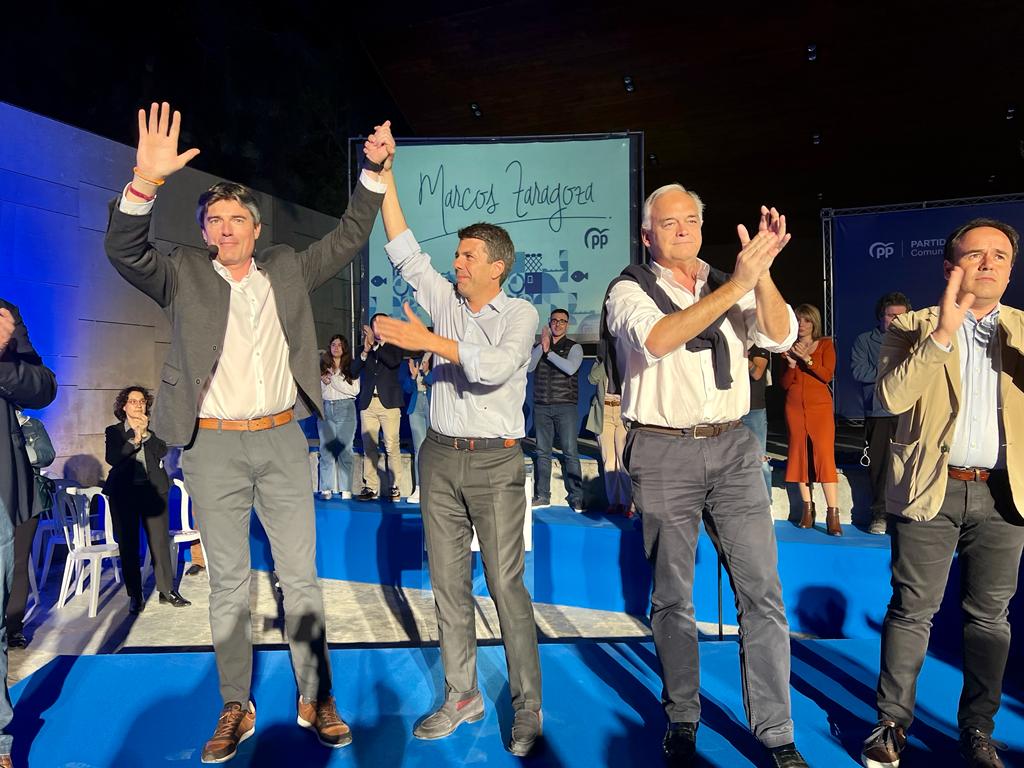 Mazón participó anoche en el acto de presentación del candidato a la Alcaldía de La Vila, Marcos Zaragoza, al que también asistieron el presidente del PP en la provincia de Alicante, Toni Pérez y el vicesecretario de Institucional del PP, Esteban González Pons.