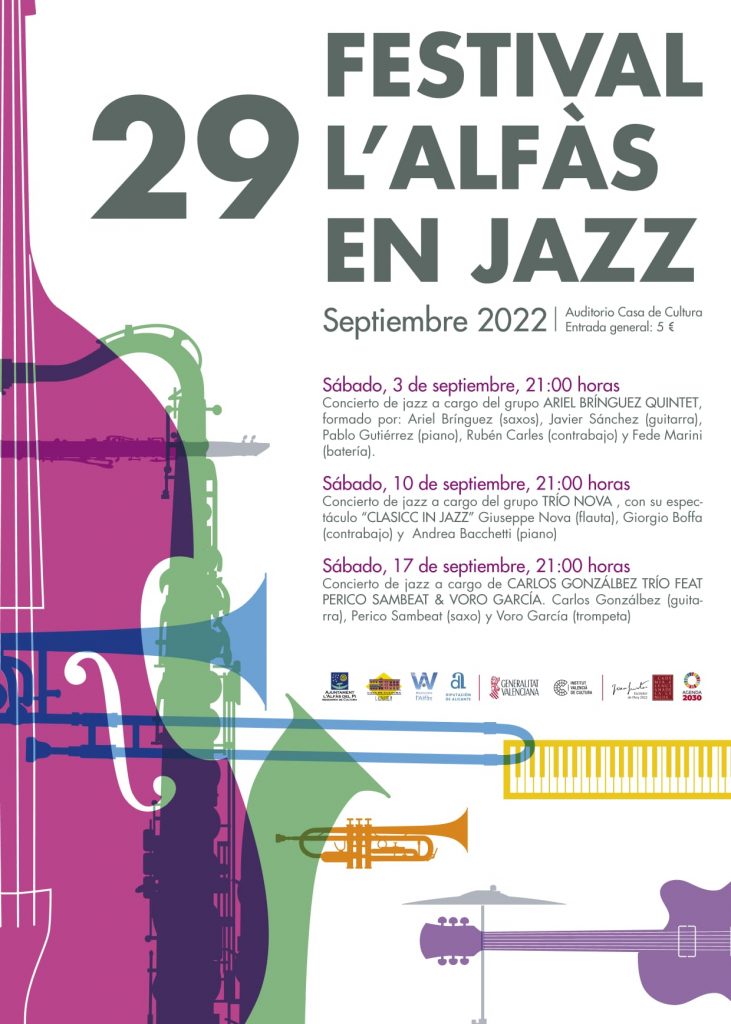 “Festival pionero no sólo en la Marina Baixa sino en toda la provincia de Alicante, que cumple 29 años y ha sabido mantener su esencia, que no es otra que el nivel de los grupos participantes y los precios populares”, ha destacado el concejal de Cultura, Manuel Casado esta mañana en la presentación. Tete Montoliu, Ximo Tébar, Lou Benet, Chano Domínguez, Charles McPherson o Pedro Iturralde son algunas de las figuras que han actuado en la larga y más que consolidada trayectoria de ‘L’Alfàs en Jazz’.