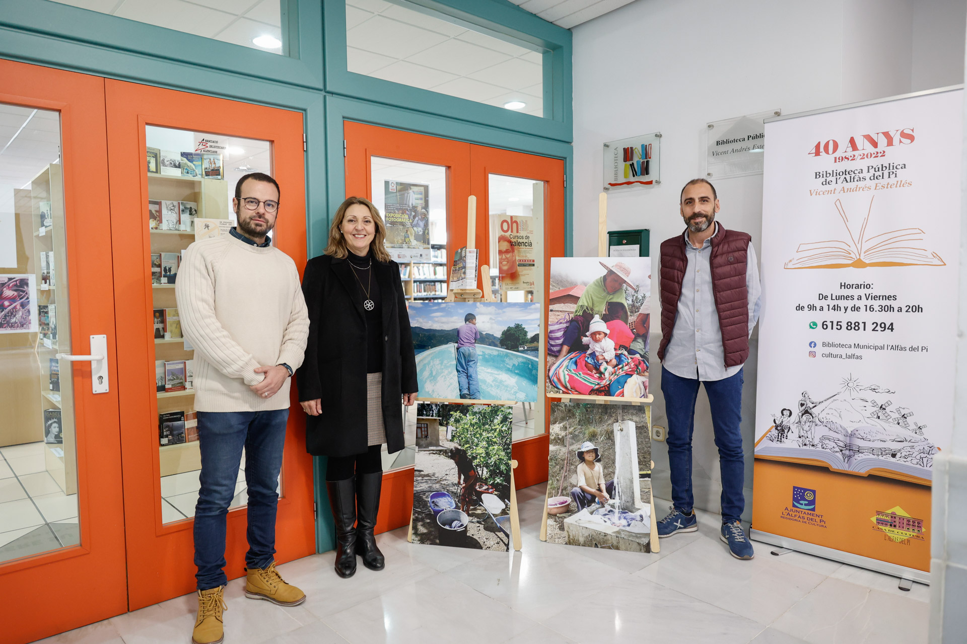 La exposición ha sido presentada por la concejala de Cooperación y Voluntariado de l’Alfàs, Isabel Muñoz, el edil de Cultura, Manuel Casado, y el bibliotecario municipal, Juan Orozco.