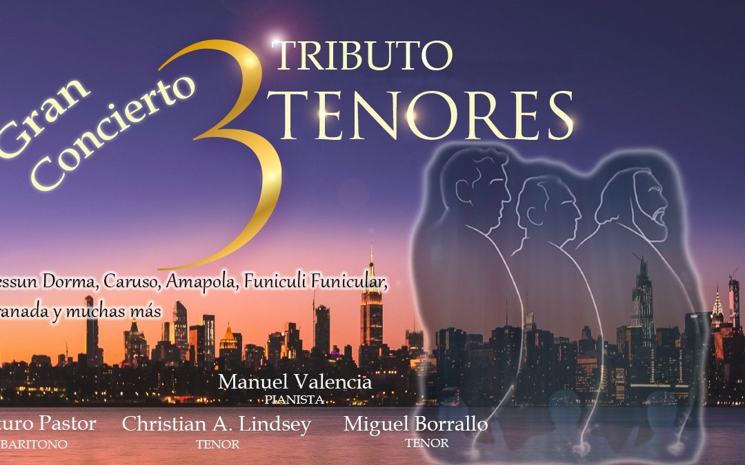 Un concierto único explica Manuel Casado, para evocar uno de los mayores acontecimientos musicales de la historia, cuando Luciano Pavarotti, Plácido Domingo y José Carreras se reunieron en el escenario de las Termas de Caracalla en Roma. En esta ocasión será el auditorio de la Casa de Cultura donde Manuel Valencia, Christian A. Lindsey, Gonzalo Terán, y Arturo Pastor ofrezcan un espectacular concierto, e interpretarán algunas de las mejores arias de las más grandes óperas.