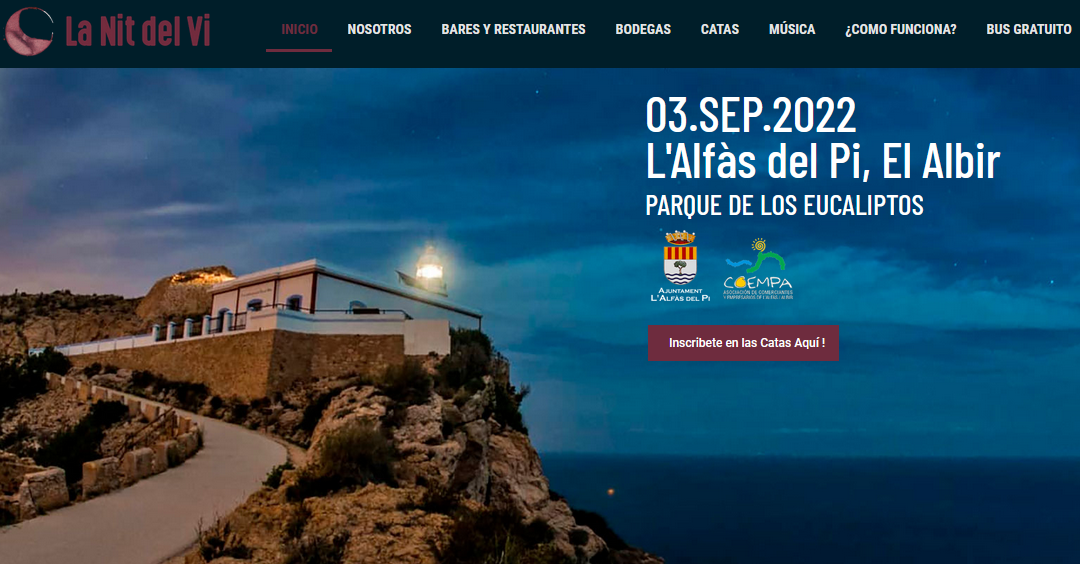 La primera Nit del Vi nace de la colaboración entre el grupo de Facebook Comer BBB, la empresa DatUp Events, la Asociación de Comerciantes y Empresarios de l’Alfàs del Pi (COEMPA) y el Ayuntamiento de l’Alfàs del Pi.