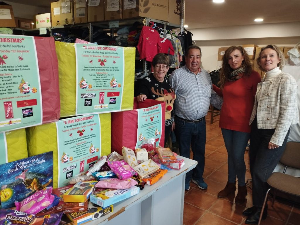 Un año más, a través de la campaña de recogida de dulces navideños ‘A Treat for Christmas’, Caroline Tyszka, promotora de la iniciativa desde el año 2015, ha entregado 80 kilos de dulces navideños a la Asociación Voluntariado Social de l’Alfàs para que pueda repartirlos entre los usuarios del Banco de Alimentos. Del mismo modo, otros 80 kilos de dulces navideños han sido donados también por Caroline Tyszka al Banco de Alimentos de La Nucía.