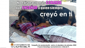 El alumnado de ‘Eduka-dogs’ ha desarrollado una campaña de concienciación contra el abandono y el maltrato animal en el IES L’Arabí. Una iniciativa que ha partido de ellos mismos, con el fin de prevenir y minimizar el abandono de animales de compañía.
