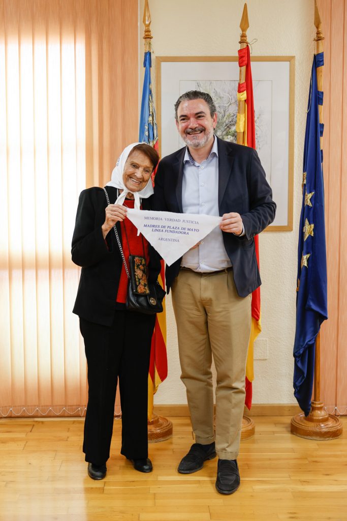 El alcalde de l’Alfàs del Pi, Vicente Arques, junto a numerosos miembros del Gobierno Local, ha querido mantener un encuentro con una de las pocas madres que quedan vivas, aunque hay asociaciones de familiares que continúan con la búsqueda de las personas desaparecidas. En el caso de Taty Almeida su hijo mediano, Alejandro, desaparecido con 20 años tras ser detenido como activista militante cuando estudiaba medicina en la Universidad, y del que nunca más se supo. Un encuentro en el que Taty Almeida ha estado acompañada por familiares y amigos.