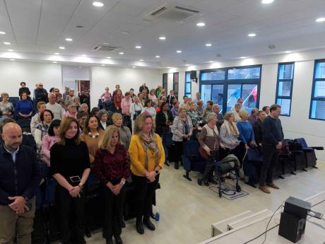 La presidenta del colectivo local de Amas de Casa, Vini Pérez, saludó a las asistentes y les dio la bienvenida al evento que comenzó con un minuto de silencio en memoria de las víctimas de los incendios de Valencia y la Vila Joiosa. Pérez también destacó la presencia en el local de dos socias “más que veteranas”, María Devesa, con 97 años y Vicenta Climent, de 91.