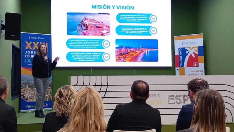La coordinadora de la Concejalía de Turismo, Virginia Puchades, fue la encargada de exponer los detalles de este proyecto, que facilita a las personas con discapacidad visual visitar y conocer los puntos turísticos más destacados de Benidorm y recogidos en los diferentes folletos turísticos.