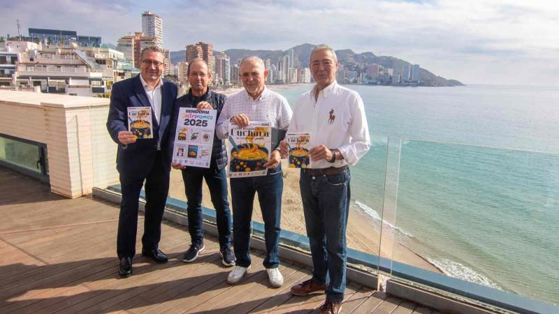 Un total de 16 restaurantes de Benidorm darán este viernes el pistoletazo de salida al Benidorm Gastronómico 2025, que como ya es tradición echará a andar con las XIII Jornadas de la Cuchara, un clásico en el calendario gastronómico local que cada año se consolida y goza de mayor aceptación entre vecinos y turistas. El edificio municipal de El Torrejó ha albergado este martes la presentación de este primer evento del calendario anual, que se prolongará entre el 21 de febrero y el 2 de marzo. El alcalde de Benidorm, Toni Pérez, ha participado en la presentación de estas jornadas junto a Javier del Castillo, presidente de Abreca, y el padrino del Benidorm Gastronómico 2024, Juan Fernández, del restaurante El Esturión, que ha cedido el testigo a Licinio García, del grupo ConBrassa, y que será quien ejerza durante este 2025 como padrino de la gastronomía local.